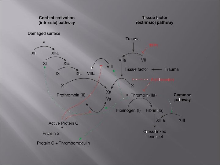 Синдром гестационной дезадаптации системы гемостаза (по Сидельниковой В. М. , 2008. ) 1. Гравидарная гиперкоагуляция и прогрессирующая тромбемия 2. Угнетение процесса фибринолиза и гиперпродукция плазминогена 3. Активизация внутрисосудистого пристеночного сворачивания и выброс простациклина 4. Нарушение антикоагулянтного потенциала плазмы