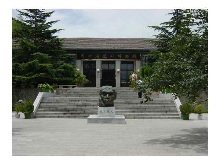 История находки • Первый череп синантропа был обнаружен в гротах Чжоукоудяня близ Пекина • Время находки - 1923 г. • Раскопки проводили немецкие археологи при финансировании Рокфеллера • В ходе которых было найдены останки 40 особей, около 100 тыс. каменных орудий. • Весь обнаруженный материал исчез во время Второй мировой войны при пересылке в США. • Сейчас в музее синантропа представлен только 1 череп • Примерный возраст синантропа из Чжоукоудяня — 770 тыс. лет (± 80 тыс. лет)