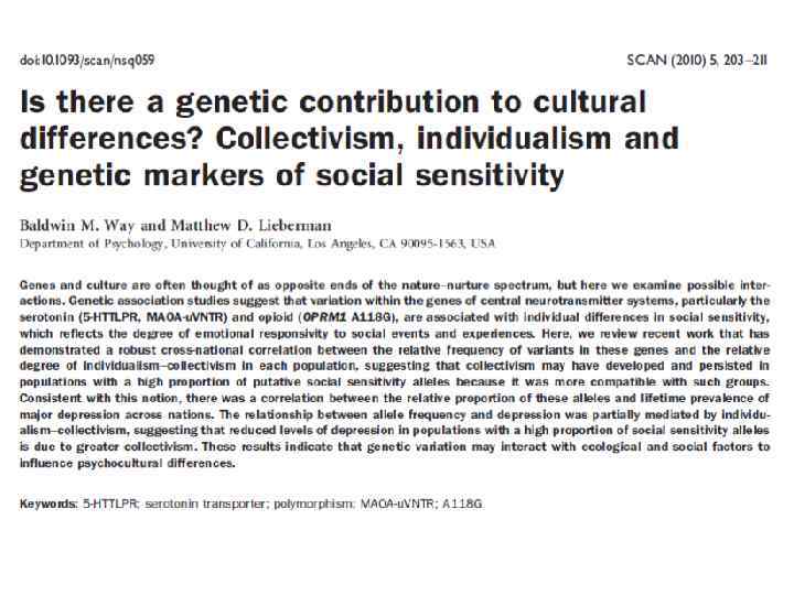 Народ - комбинация генетики и условий окружающей среды • Изменчивая среда • Отсутствие правил • если кто тебе и поможет в трудную минуту, так это сосед, и все. И больше никто. ГЕНЕТИКА ЧЕЛОВЕКА ОБЩЕСТВО ОКРУЖАЮЩАЯ СРЕДА