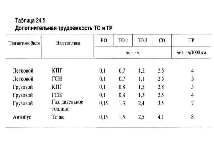 В основе организации технологических процессов ТО и ТР газобаллонного автомобиля лежит принцип совмещения технического обслуживания базового автомобиля и ГБО. При организации ТР учитывается надежность элементов газового оборудования (см. рис. 1). Дополнительная трудоемкость ТО и ТР связана с обслуживанием и ремонтом ГБО (табл. 24. 5).