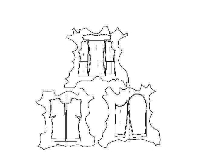 Особенности формообразования изделий из натуральной кожи Пространственная форма одежды может быть получена конструктивным путем при использовании вытачек и швов сложной конфигурации, способом формования за счет использования деформации материала на различных участках конструкции либо комбинированием этих методов. Кожа относится к материалам, формообразование из которых традиционно ведется конструктивным путем с минимальным применением влажно-тепловой обработки, предусматривает использование большого количества горизонтальных и вертикальных линий (рельефы, отрезные боковые части, кокетки, отрезная линия талии, средний шов спинки, притачные манжеты, двух- или трехшовные рукава). Такая конструкция одежды способствует и рациональному использованию кож, поскольку их небольшие размеры предполагают наличие составных деталей в конструкции изделия.