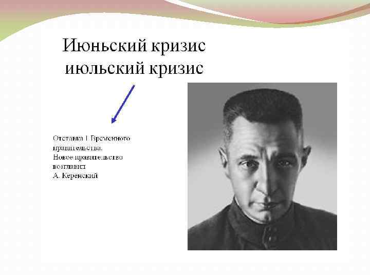 ВРЕМЕННОЕ ПРАВИТЕЛЬСТВО В 1917 Г. И ЕГО КРИЗИСЫ Время пребывания у власти Председатель правительства Партийнополитический состав Причины кризиса 2 марта – 6 мая 1917 г. Князь Г. Е. Львов Кадеты, октябристы, прогрессисты, беспартийные Нота Милюкова союзникам по поводу продолжения участия России в войне 6 мая – 24 июля 1917 г. Князь Г. Е. Львов Кадеты, эсеры, меньшевики Разногласия в правительстве. Неудачное наступление на фронте. Июльские события в Петрограде 24 июля – 25 сентября 1917 г. (1 – 25 сентября – директория А. Ф. Керенский Кадеты, эсеры, меньшевики Углубление социальноэкономического и политического кризиса в стране 25 сентября – 25 октября 1917 г. А. Ф. Керенский Кадеты, эсеры, меньшевики Взятие власти большевиками