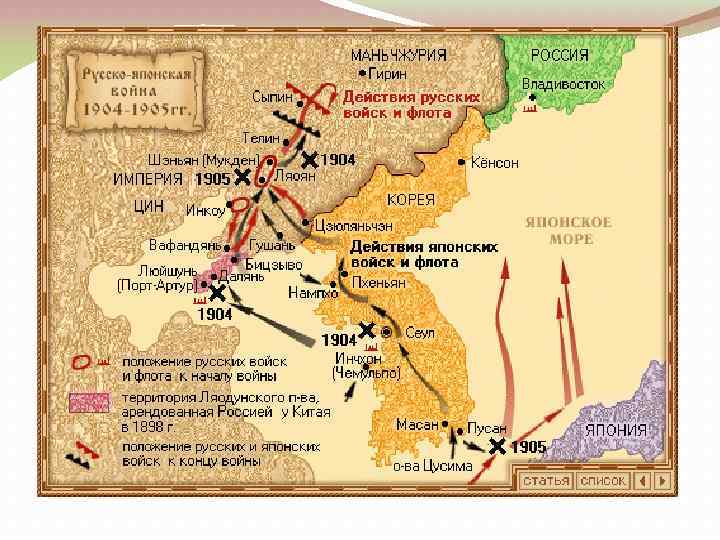 РОССИЯ В СИСТЕМЕ МЕЖДУНАРОДНЫХ ОТНОШЕНИЙ НАЧАЛА XX века: ОТ РУССКО-ЯПОНСКОЙ ДО ПЕРВОЙ МИРОВОЙ ВОЙНЫ. - Японо-китайская война 1894 г. и ультиматум России; Активность России на Дальнем Востоке - 1896 г. - русско-китайский оборонительный союз 4 - 1896 г. – КВЖД; - 1898 г. – аренда Порт-Артура; - 1899 г. – доктрина «открытых дверей» ; - 1900 г. – ввод русских войск в Маньчжурию; - 1902 г. – англо-японский союз против России; - 1903 г. – Япония – проект пот Корее и Маньчжурии; - 25. 01. 1904 г. – разрыв дипломатических отношений Внешнеполитическая изоляция Р у с с к о - я п о н с к а я в о й н а Ход войны Портсмут, август 1905 г. Причины поражения - помощь Японии со стороны Англии и США - Франция - нейтралитет - Германия – углубление германо-русских противоречий - 26. 01. 1904 г. – нападение на русский флот в Порт-Артуре и крейсер «Варяг» в Чемульпо, активность русского флота под командованием Макарова - высадка японцев на материк и захват стратегической инициативы - бои на Цзинь-Чжоуском перешейке – июнь-декабрь 1904 г. - июнь-декабрь 1904 г. – оборона Порт-Артура – Кондратенко, Стессель - август 1904 г. – Ляоян -сентябрь – на реке Шахе - февраль 1905 г. – Мукден – 660 тыс. -май 1905 г. – Цусима - арендные права на Ляодунский полуостров - Южно-Маньчжурская ж/д - южная часть Сахалина -право рыболовства - техническая отсталость армии и флота - бездарность командования - нестабильность в стране в связи с революцией -значение – революционизирующий фактор