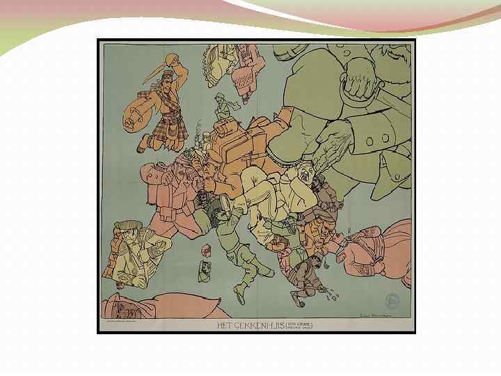Убегающие французы, и русские, пытающиеся проглотить всю Европу, конечно и русский медведь есть, и испанцы, которым наплевать на все происходящее, и англичане, прячущие свой флот под шотландский килт. Образов много, рассматривайте.