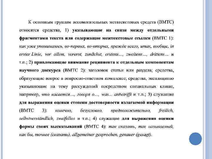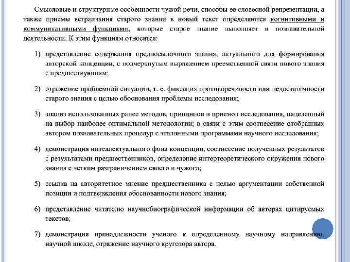 МАРКЕРЫ АВТОРИЗАЦИИ 1 группа - Так, Р. Якобсон считает. . . - Замена близкозвучным словом, или, по Домбровской, «фонетическая аллюзия» . . . (ВЯ) - Р. Матланд и Студлар высказали предположение, что… - Дж. Роунер отмечает… - Согласно Е. А. Здравомысловой, …(СОЦИС). 2 группа - Многие философы-компаративисты настаивают на том, что материалистический интерес. . . (ВФ) - Как правило, лингвисты не усматривали здесь никаких проблем для теоретического исследования. . . (ВЯ) - Феминистские последователи марксизма предлагают два варианта концептуализации гендерных отношений… (СОЦИС) - Идеологи социального партнерства в России, выступавшие от имени научного сообщества. . . заявляли, что. . . (ВЭ)