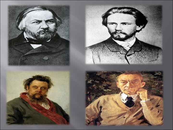 Музыка Русское музыкальное наследие включает в себя как русскую народную музыку, так и творчество русских композиторов XVI—XX веков, русский музыкальный фольклор, русский романс, популярную музыку советского и постсоветского периода, русский рок, творчество бардов, русский хип-хоп. Русская народная музыка исполнялась на русских музыкальных инструментах. Русская классическая музыка содержит творческое наследие таких великих композиторов, как: Михаил Иванович Глинка, Модест Петрович Мусоргский, Александр Порфирьевич Бородин, Николай Андреевич Римский-Корсаков, Пётр Ильич Чайковский, Сергей Васильевич Рахманинов, Александр Николаевич Скрябин, Игорь Фёдорович Стравинский. Среди советских композиторов одними из самых значимых являются: Сергей Сергеевич Прокофьев, Дмитрий Дмитриевич Шостакович, Альфред Гарриевич Шнитке, Николай Яковлевич Мясковский, Георгий Васильевич Свиридов.