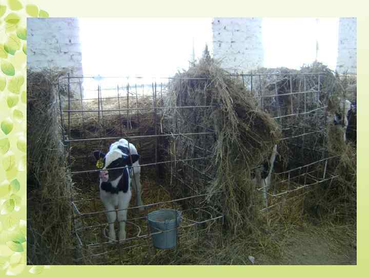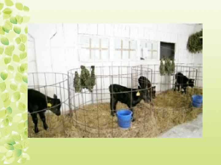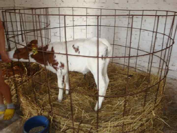 Максимальный срок содержания телят в индивидуальных домиках – до шести недель. На ряду глубокой подстилкой из соломы, в кормушке постоянной должен быть концентрированный корм и свободный доступ к воде. Далее молодняк переводят в групповые клетки по 4 - 5 (мах 8 голов) в каждой с учётом их возраста и развития.