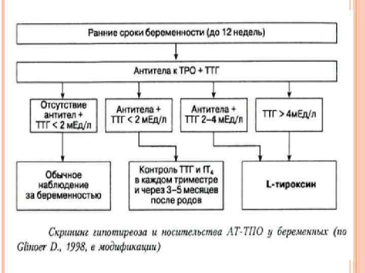 СКРИНИНГ ЩИТОВИДНОЙ ЖЕЛЕЗЫ У БЕРЕМЕННЫХ Следует заметить, что в настоящее время отсутствуют контролируемые исследования, которые свидетельствуют в пользу всеобщего скрининга, но большинство авторов рекомендаций высказались в его пользу. По материалам клинических рекомендаций Европейской тиреоидной ассоциации по диагностике и лечению субклинического гипотиреоза у беременных женщин и детей // Клиническая и экспериментальная тиреоидология. – 2014. – Т. 10. – № 3.