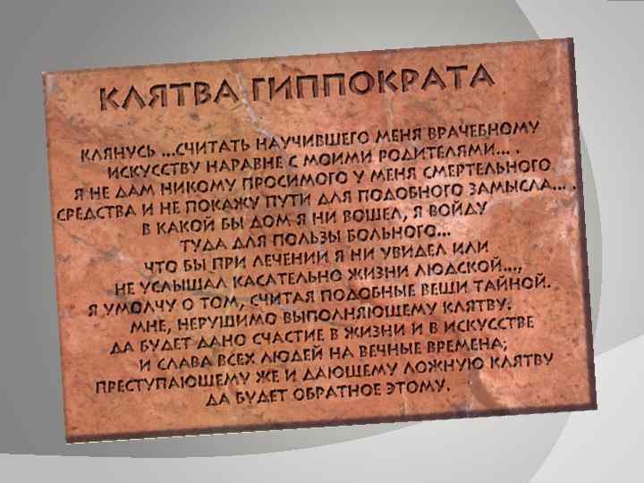 Светское врачевание Возникновение этой медицины в Древней Греции обычно связывают с именем Гиппократа (примерно 460 -370 гг. до н. э. ), которому приписывают более 60 сочинений на медицинские темы. Кроме того, исследование знаменитой "Клятвы" Гиппократа, проведенное Л. Эдельштейном показывает, что автор "Клятвы" выше всего ставил диетику, а после нее фармакологию, отвергал хирургию, не рекомендовал применять для лечения яды и давать абортивные средства.