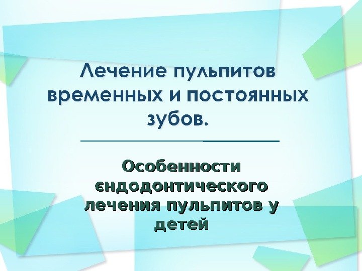 Описание презентации Особенности єндодонтического лечения пульпитов у детей Лечение по слайдам