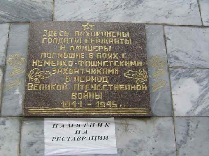 В центре нашего посёлка находится памятник Воину-Освободителю. Здесь похоронены солдаты, сержанты и офицеры, погибшие в боях с немецкофашистскими захватчиками. Этот памятник был первым в нашем посёлке, посвящённый воинам Великой Отечественной. До сих пор стоит солдат на страже покоя и мира, стоит солдат, склонив голову в знак скорби по погибшим. На плитах у основания памятника высечены имена. Они погибали, защищая наш посёлок, умирали от ран и болезней в госпиталях.