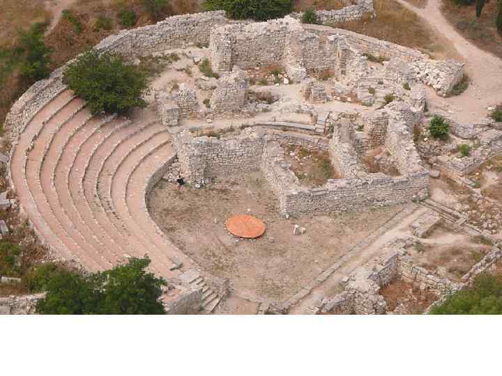 Постепенно сложилась схема греческого театра Орхестра Театрон Парод Скена Проскений Канал для дождевой воды