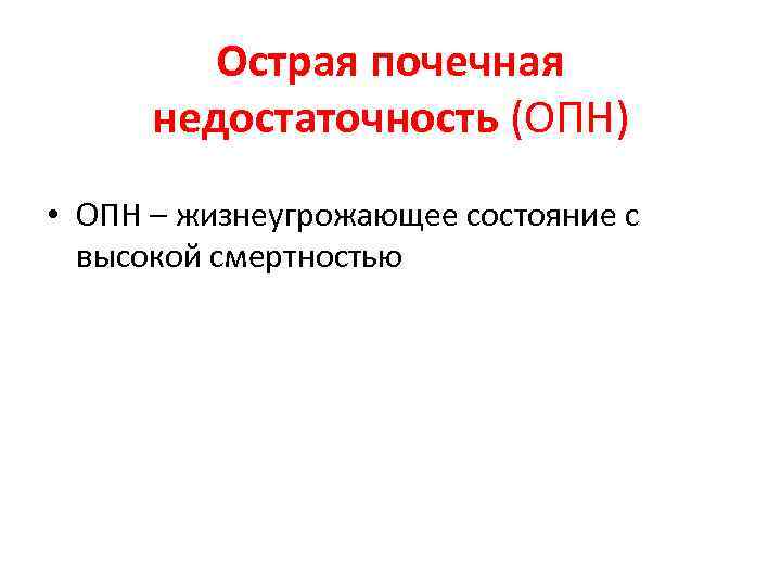 Острая почечная недостаточность (ОПН) • ОПН – жизнеугрожающее состояние с высокой смертностью