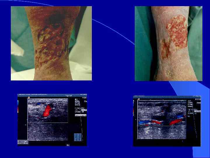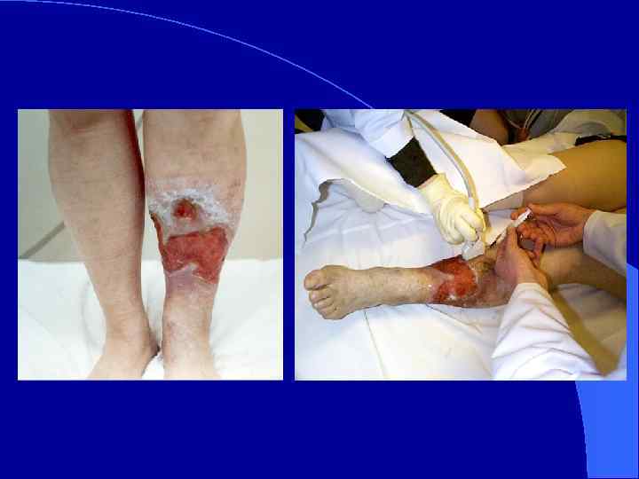 СТЕПЕНИ ХРОНИЧЕСКОЙ ВЕНОЗНОЙ НЕДОСТАТОЧНОСТИ l 0. Симптоматика отсутствует. l 1. Синдром тяжелых ног. l 2. Преходящий отек. l 3. Стойкий отек, гипер… и гипопигментация, липодерматосклероз, экзема. l 4. Венозная трофическая язва.