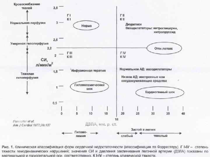 Классификация по клинической тяжести § классификация основана на оценке состояния периферического кровообращения (перфузии тканей) и аускультации легких (застоя в легких). Выделяют: § класс I (группа А) ( «тепло и сухо» ), § класс II (группа В) ( «тепло и влажно» ), § класс III (группа I. ) ( «холодно и сухо» ), § класс IV (группа С) ( «холодно и влажно» ). Эта классификация нашла прогностическое применение при кардиомиопатиях, и поэтому может применяться у больных с ХСН.