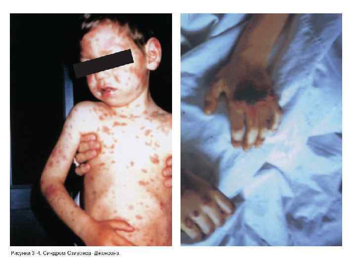 Синдром Стивенсона Джо нсона (злокачественная экссудативная эритема), тяжелая форма многоформной экссудативной эритемы. Токсико-аллергическое заболевание.