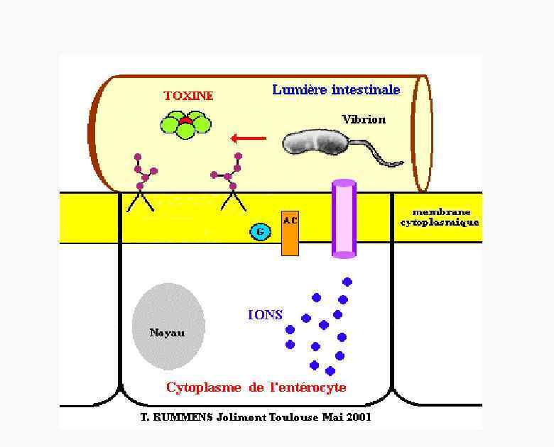 Термолабильный энтеротоксин В норме регуляция аденилатциклазы осуществляется регуляторным белком (Gs) и гуанозинтрифосфатом(GTP). А 1 субъединица холерного токсина Однако, активация подавляется регуляторным белком(Gi) и происходит прикрепляется к белку Gs с образованием комплекса (Gs-ADPR), и гидролиз ГТФ. становится невозможен. Поскольку гидролиз ГТФ является ключевым событием для инактивации аденилатциклазы, фермент остается в состоянии постоянной активации.