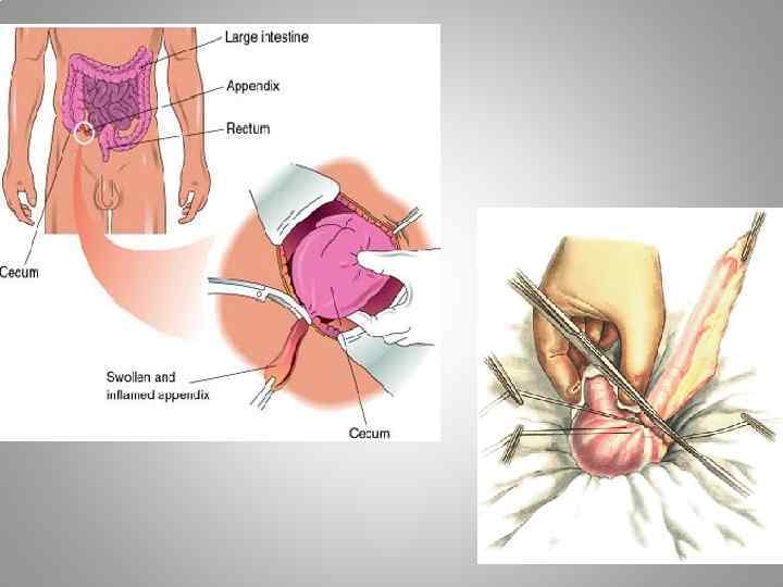 • Лапароскопия- это вскрытие брюшной полости с помощью небольших отверстий для оперативного лечения аппендицита. • Аппендэктомия –это удаление аппендицита. • Традиционная аппендэктомия – удаление аппендицита путем разреза брюшной полости. • Перитонит – воспаление брюшной полости