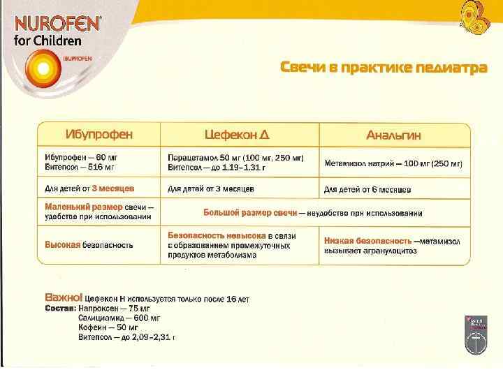 Рекомендации Союза Педиатров России • Парацетамол 10 -15 мг/кг веса тела в разовой дозе не более 60/кг мг в сутки • Нурофен для Детей 5 -10 мг/кг веса в разовой дозе, не более 40 мг/кг в сутки • Анальгин в инъекциях из расчета 0, 1 мл на год жизни в сочетании с антигистаминными и спазмолитическими препаратами