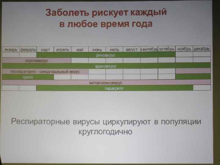 Для острых инфекций респираторного тракта у детей характерен ряд особенностей: • неизменно случаются каждый год (!) • пик заболеваемости в холодные месяцы года • чаще болеют дети дошкольного возраста (≈ 6– 7 раз/год) • 10– 15% детей могут переносить ОРИ до 12 раз в год; • по мере взросления ребенка частота ОРВИ снижается • дети, посещающие организованные коллективы, болеют ОРИ намного чаще (более чем на 50%).