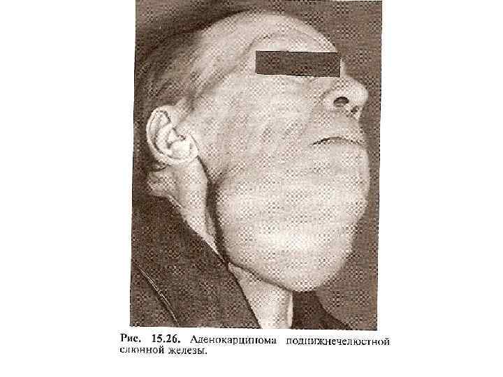 Сиалограмма больной с аденокарциномой околоушной слюнной железы. Имеется скопление рентгенконтрастного вещества в виде «чернильных пятен» . Сиалограмма больной с ацинозноклеточной опухолью околоушной железы. Прямая проекция. Видны обрывки (фрагментация) выводных протоков, паренхима железы не прослеживается.