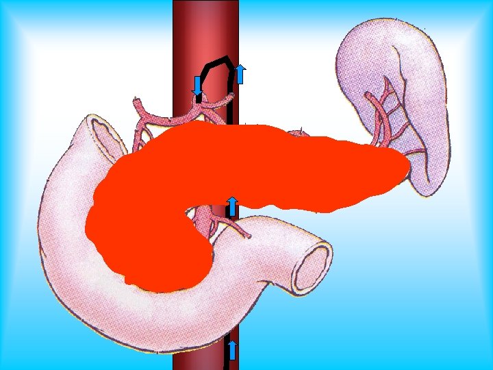 Ангиографическая семиотика ПЖ при различных формах ОП Изменения артерий ПЖ Изменения циркуляции крови в паренхиме железы Изменения артериальных сосудов вокруг ПЖ Панкреонекроз ограниченный Сужение просвета сосудов, тромбозы сосудов Локальное ослабление артериального кровоснабжения, позднее наступление венозной фазы Оттеснение чревной, общей печеночной, желудочнодвенадцатиперстной артерий, иногда диаметр печеночной артерии становится шире селезеночной Панкреонекроз распространенный Тромбозы сосудов Ослабление артериального кровоснабжения вплоть до полного исчезновения сосудистого рисунка, задержка или отсутствие спленопортограммы Тромбозы крупных артерий желудка и 12 п. к.