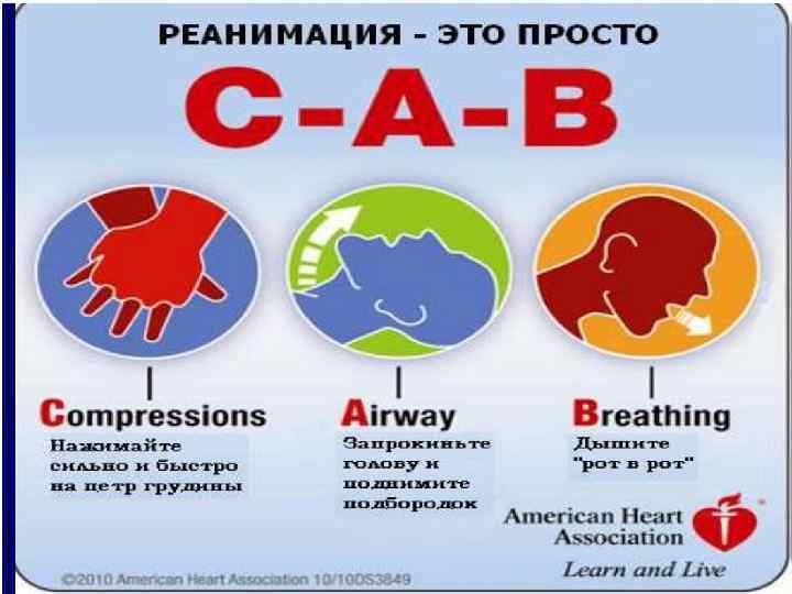 Реанимация: изменение последовательности А-В-С на С-А-В • С (Chest compressions) – компрессионные сжатия • • А (Airway) – освобождение дыхательных путей • • В (Breathing) – искусственное дыхание