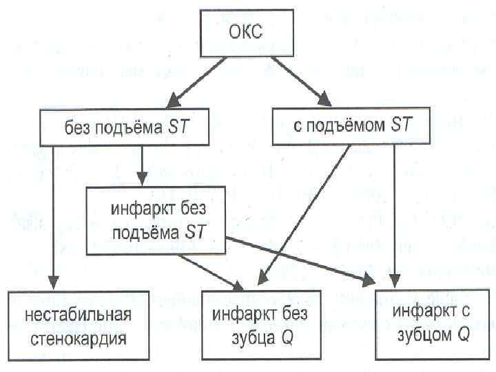 КЛАССИФИКАЦИЯ Острый коронарный синдром с подъемом сегмента ST - крупноочаговый инфаркт миокарда Острый коронарный синдром без подъема сегмента ST - нестабильная стенокардия - мелкоочаговый инфаркт миокарда