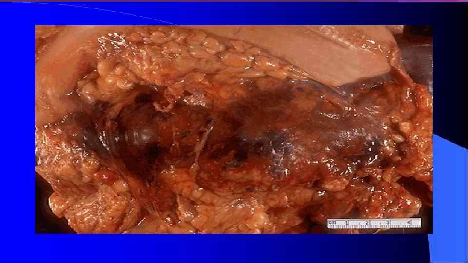 Инфицированный панкреонекроз инфицированный панкреонекроз представлен серо-черной неоднородной массой замазкообразной консистенции, не имеющий капсулы - стенки или сформировавшейся капсулы с мутным, типа «мясных помоев» или гнойным эксудатом с микроабсцессами в паренхиме и забрюшинной клетчатке. Балалыкин А. С. , Луцевич О. Э. , Галлямов Э. А. , 2007