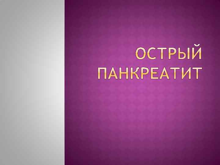 ОСТРЫЙ ПАНКРЕАТИТзаболевание, в основе которого лежит воспалительнонекротический процесс в поджелудочной железе.