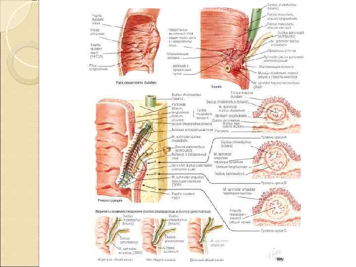 Внутреннее дренирование желчных протоков q Показания: Не поддающийся удалению камень БДС Трункулярный стеноз терминального отдела холедоха Опухоли билиопанкреатической зоны, выявленные во время операции Атрезия общего желчного протока Варианты: Холедоходуоденостомия Холедохоеюностомия Папиллосфинктеротомия и папиллосфинктеропластика