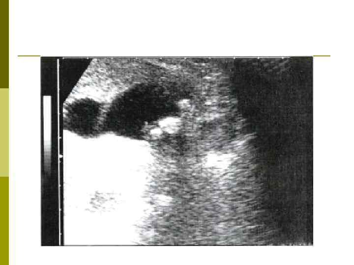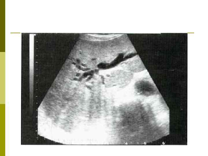 Острый холецистит: ультразвуковое исследование В диагностике холедохолитиаза задача УЗисследования заключается не столько в обнаружении камней во внепеченочных желчных протоках, сколько в поисках прямых и косвенных признаков желчной гипертензии: FРасширение внутрипеченочных желчных протоков Fувеличение диаметра общего печеночного и желчного протоков p Выявление этих признаков требует проведения дополнительных исследований для уточнения причины холестаза. p