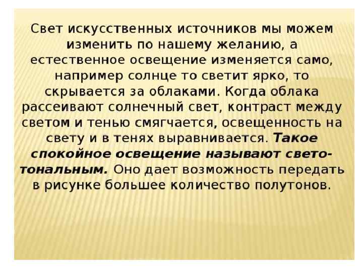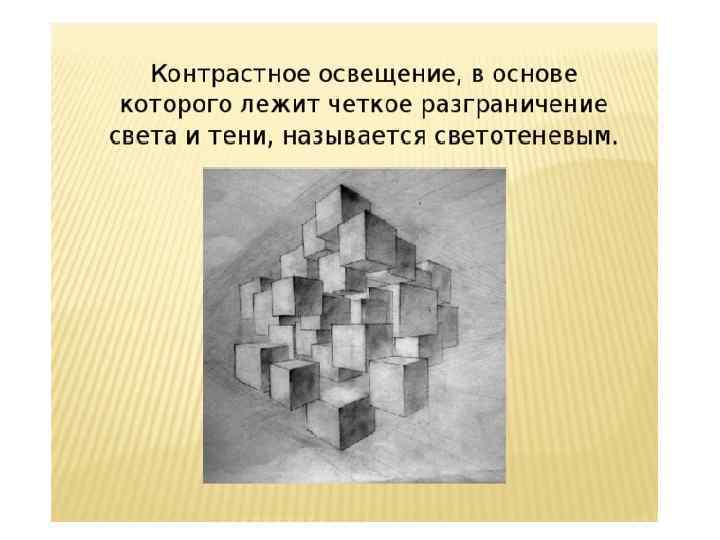 Свет и тень (светотень) – очень важное средство изображения предметов действительности, их объема и положения в пространстве.