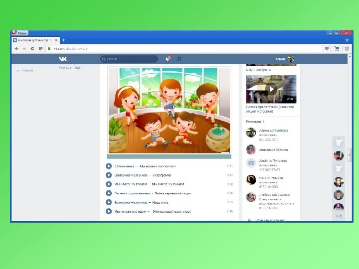 К работе по данной методике подключились родители: желающие скачивают материал для закрепления дома, так же композиции я выкладываю в группе для родителей на сайте vk. com и даю различные рекомендации.