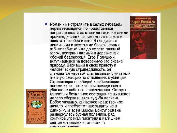 От экологии природы к экологии души по роману Бориса Львовича Васильева «Не стреляйте в белых лебедей»