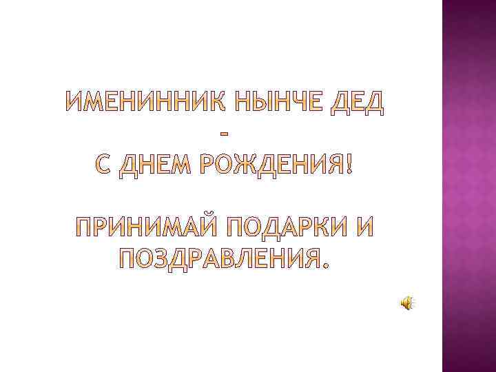 Ты мудрый, дед, и твои мысли Дают смысл жизни осознать. Так пусть же будет все, что хочешь… Здоровье, радость и тепло, Пусть ярко светят звезды ночью, А днем луч солнца так светло.