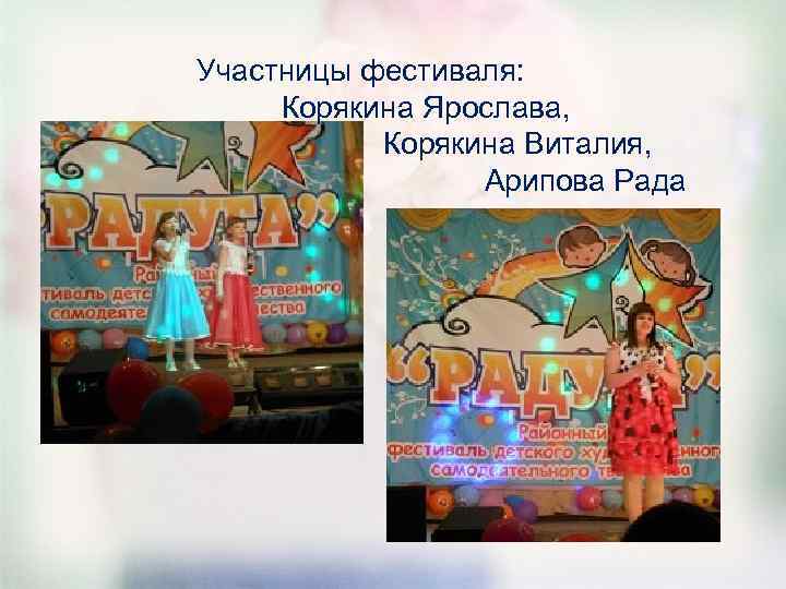 Участницы фестиваля: Корякина Ярослава, Корякина Виталия, Арипова Рада