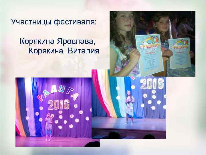 Участницы фестиваля: Корякина Ярослава, Корякина Виталия