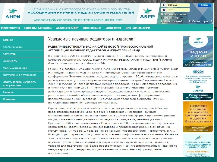 ОТЧЕТ Общему собранию Ассоциации научных редакторов и издателей (АНРИ) Кириллова О. В. , президент Общее собрание АНРИ, 20 мая 2016 года, РАНХи. ГС, г. Москва