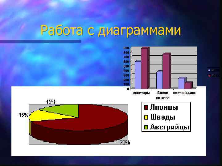Работа в Excel Работа с таблицами n Работа с формулами n Работа с диаграммами n