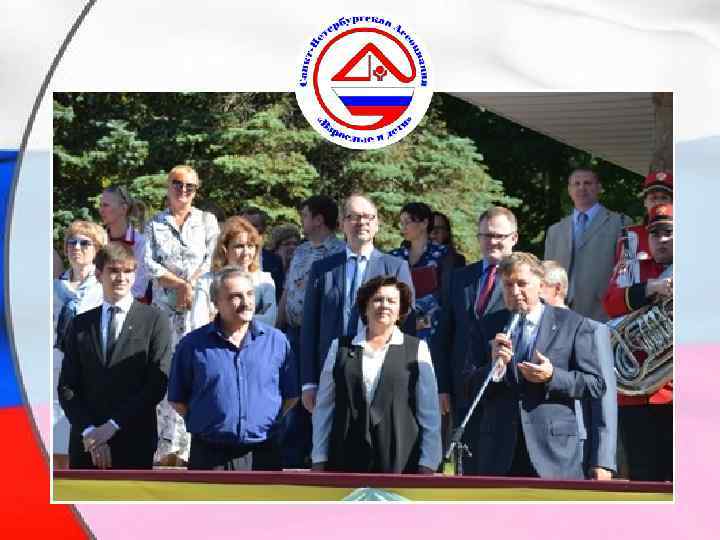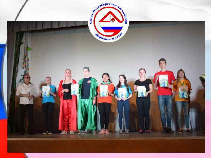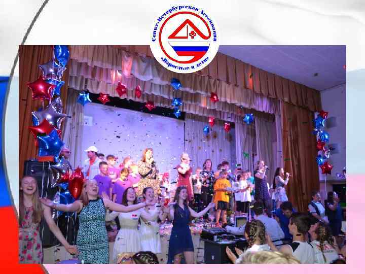 • • • Санкт-Петербургская Ассоциация «Взрослые и дети» за прошедший год организовала: - межрегиональный открытый семинар руководителей и организаторов детского отдыха и оздоровления «Вместе – в будущее» проходивший на базе ДОЛ «Зеленый город» им. Тамары Трушковской» в сроки 27. 02. 17 -03. 17; - межлагерные фестивали детского творчества «Краски лета – 2017» - межлагерные фестивали Вожатского мастерства - межлагерные спартакиады Ассоциация приняла участие в: - XI Международном конгрессе лагерей проходившем в городе Сочи с 9 по 13 октября 2017 года; - работе межведомственной комиссии по организации отдыха и оздоровления детей и молодежи Санкт-Петербурга; - подготовке слета вожатых отрядов детских оздоровительных лагерей Санкт-Петербурга «Вожатское лето SPb. ru@ - проведении смотра – конкурса на лучшую организацию летней оздоровительной кампании 2017 года