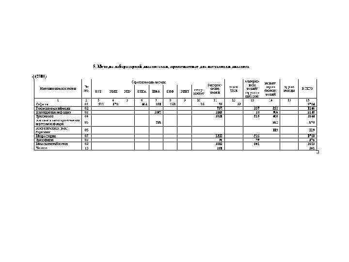 Таблица 2500: Должна заполняться на основании учетной формы 089/укв из пункта 9 Лабораторное подтверждение. Здесь учитываются только те лабораторные исследования, которые были использованы при установлении диагноза.