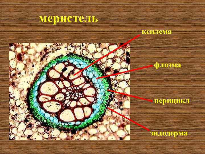 меристель ксилема флоэма перицикл эндодерма