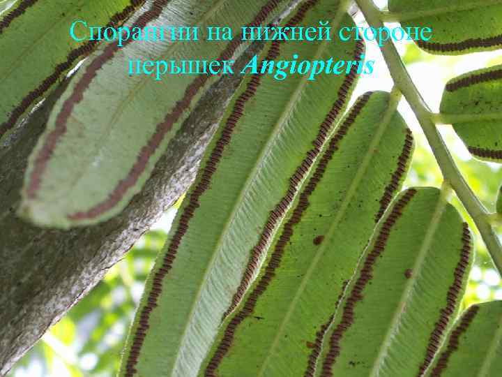 Спорангии на нижней стороне перышек Angiopteris