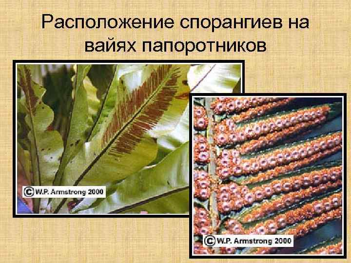 Расположение спорангиев на вайях папоротников
