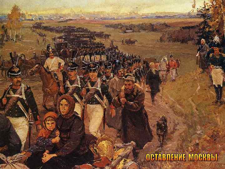 «С ПОТЕРЕЮ МОСКВЫ НЕ ПОТЕРЯНА ЕЩЕ РОССИЯ. ПЕРВОЮ ОБЯЗАННОСТЬЮ СТАВЛЮ СЕБЕ СОХРАНИТЬ АРМИЮ, СБЛИЗИТЬСЯ С ТЕМИ ВОЙСКАМИ, КОТОРЫЕ ИДУТ К НЕЙ НА ПОДКРЕПЛЕНИЕ, И САМЫМ УСТУПЛЕНИЕМ МОСКВЫ ПРИГОТОВИТЬ НЕИЗБЕЖНУЮ ГИБЕЛЬ НЕПРИЯТЕЛЮ. ПОЭТОМУ Я НАМЕРЕН, ПРОЙДЯ МОСКВУ, ОТСТУПИТЬ ПО РЯЗАНСКОЙ ДОРОГЕ. ЗНАЮ, ОТВЕТСТВЕННОСТЬ ПАДЕТ НА МЕНЯ, НО ЖЕРТВУЮ СОБОЮ ДЛЯ СПАСЕНИЯ ОТЕЧЕСТВА. ПРИКАЗЫВАЮ ОТСТУПАТЬ!» М. И. Кутузов