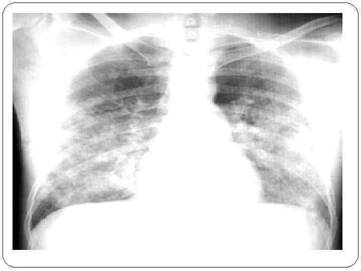 Рентгенологические признаки очаги и фокусы уплотнения лёгочной ткани с нечёткими контурами, сливающиеся между собой (облаковидные инфильтраты) расширение тени левого желудочка выпот в плевральной полости усиленный сосудистый рисунок нечеткие контуры сосудов появление силуэта «летучей мыши» или «бабочки»