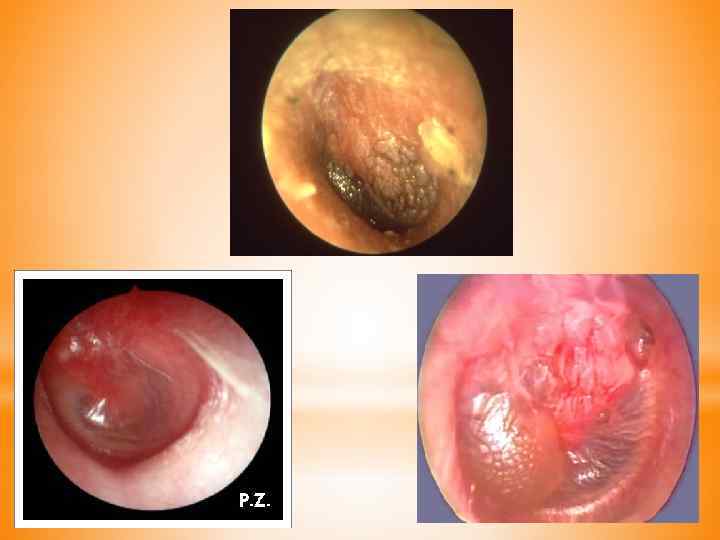 Средние отиты Острый средний отит Развивается в ходе проникновения инцекции главным образом через слуховую трубу в среднее ухо при остром или обостреннии хронического воспаления слизистой оболочки носа и носоглотки. Различают катаральную и гнойную фотры заболевания. Расстройство вентиляционной функции слуховой трубы способствует венозному застою в слизистой оболочке барабанной полости и образованию транссудата. Серозное воспаление вызывается слабовируленткой инцекцией, проникающих из верхних дыхательных путей, на фоне ослабления защитных сил организма. Отит у новорожденных возникает в результате попадания околоыхплойдных вод в среднее ухо во время прохождения по родовым путям. Большое значение имеет также анатомическое строение слуховой трубы(у детей она шире и короче). Различают 3 стадии острого среднего отита: 1. Возникновение воспалительного процесса, образование экссудата(острый катаральный отит). 2. Пробудение барабанной перепонки и гноетечение(острый гнойный отит) 3. Затихание восполительного процесса, уменьшение и прекращение гноетечения, сращение краев прободения барабанной перепонки. Продолжительность заболевания от нескольких дней до нескольких недель.
