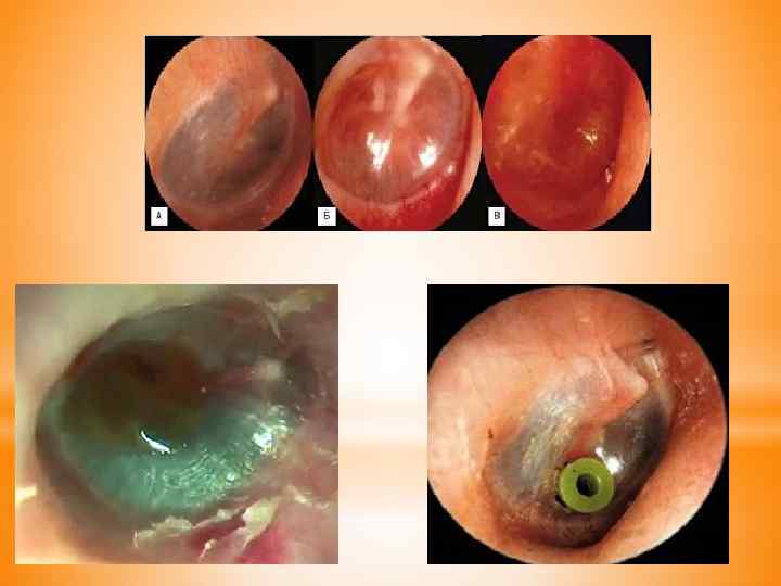 Симптомы, течение острого среднего отита Зависят от стадии воспалительного процесса 1 стадия-сильная боль в ухе, иррадирующая соответствующую половину головы, зубы, высокая температура тела(3839), значительное понижение слуха по типу поражения звукопроводящего аппарата. При отоскопии в начале воспаления видны расширенные кровеносные сосуды, затем появляется гиперемия барабанной перепонки, ее контуры сглаживаются. В конце этой стадии происходит выпячивание бар. перепонки. В крови лейкоцитоз, повышенная СОЭ. 2 стадия-возникает гноетечение в результате прободения бар. Перепонки, боль при этом стихает, но может возобновиться при задержке оттока гноя. Общее состояние улучшается, температура тела нормализуется. При отоскопии в этой стадии виден гной, уменьшение выпячивания бар. перепонки, однако еще остаются гиперемия и сглаженность ее контуров. 3 стадия-после прекращения гноетечения ведущей жалобой может быть понижение слуха.