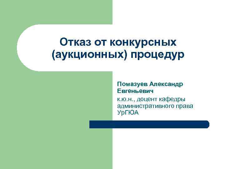 Отказ от конкурсных (аукционных) процедур Помазуев Александр Евгеньевич к. ю. н. , доцент кафедры административного права Ур. ГЮА